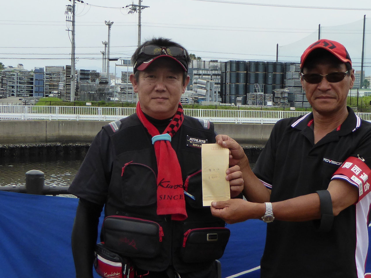 2017年07月10日 第24回茅渟関西連合 本大会 in 尼崎 大会結果 7月9日(日)、尼崎 久保渡船において第24回茅渟関西連合 本大会を開催いたしました大会結果(敬称略)1位 黒田耕平 影防師 52.6cm2位 山本一雄 潮友会 50.6cm3位 西村隆平 北友会 49.5cm4位 小田井角栄 49.1cm5位 竹田敏雄 神戸7防黒鯛人 48.7cm6位 市橋貢 都友会 48.4cm以下、検寸等の写真です集合写真